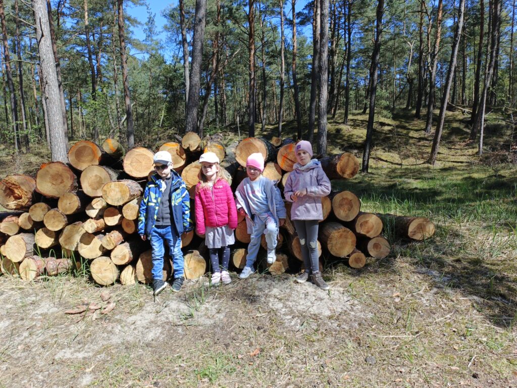Grupa Gwiazdeczek w lesie z workiem śmieci