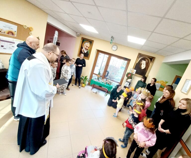 Cała wspólnota Domu św. Ojca Pio spotkała się jak Trzej Królowiena poszukiwaniu Dzieciątka Jezus.W czasie kolędy ks. kapelan Paweł Janaszkiewicz poświęcił wszystkie sale, gabinety i pomieszczenia Wczesnego Wspomagania i Przedszkola.