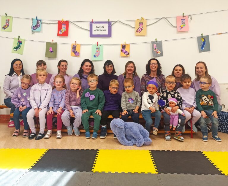 Obchodziliśmy w Przedszkolu Światowy Dzień Wcześniaka,którego symbolem jest malutka skarpetka oraz kolor fioletowy – symbol siły i delikatności.