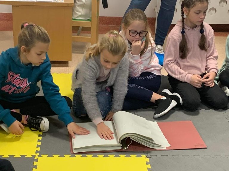 27.10.2022 w przedszkolu gościliśmy dzieci ze Szkoły Podstawowej w Świbnie. Drugo i trzecioklasiści przyjechali do nas na warsztaty. Dzieci miały okazję zobaczyć sprzęty i pomoce ułatwiające osobom niewidomym codzienne funkcjonowanie. Rozmawialiśmy jak funkcjonuje osoba niewidoma i jak można jej pomóc.
